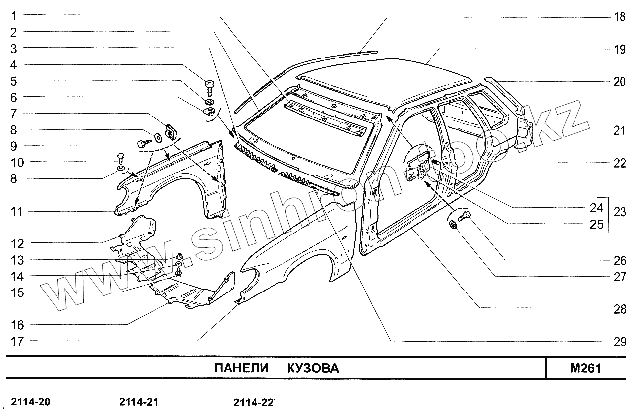 Каталог запасных частей к технике: ВАЗ-2114. Панели кузова