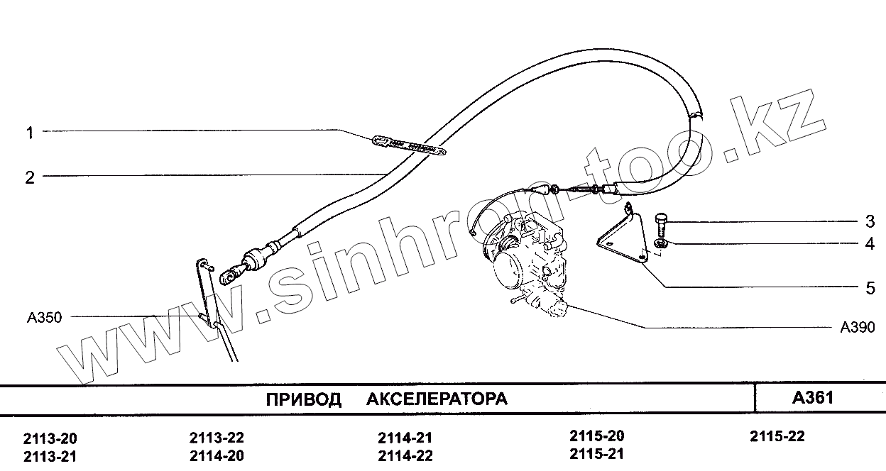 Каталог запасных частей к технике: ВАЗ-2114. Привод акселератора
