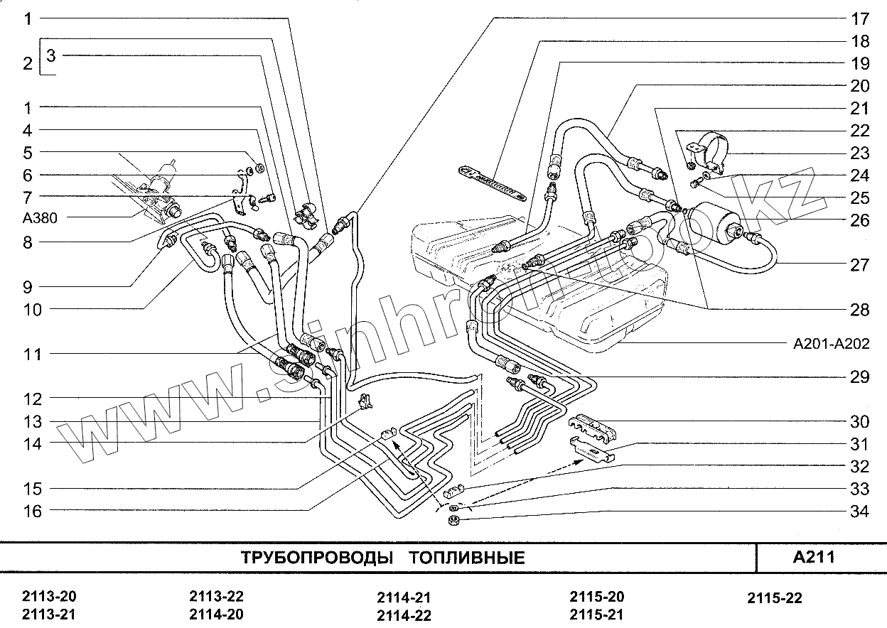 Каталог запасных частей к технике: ВАЗ-2114. Трубопроводы топливные