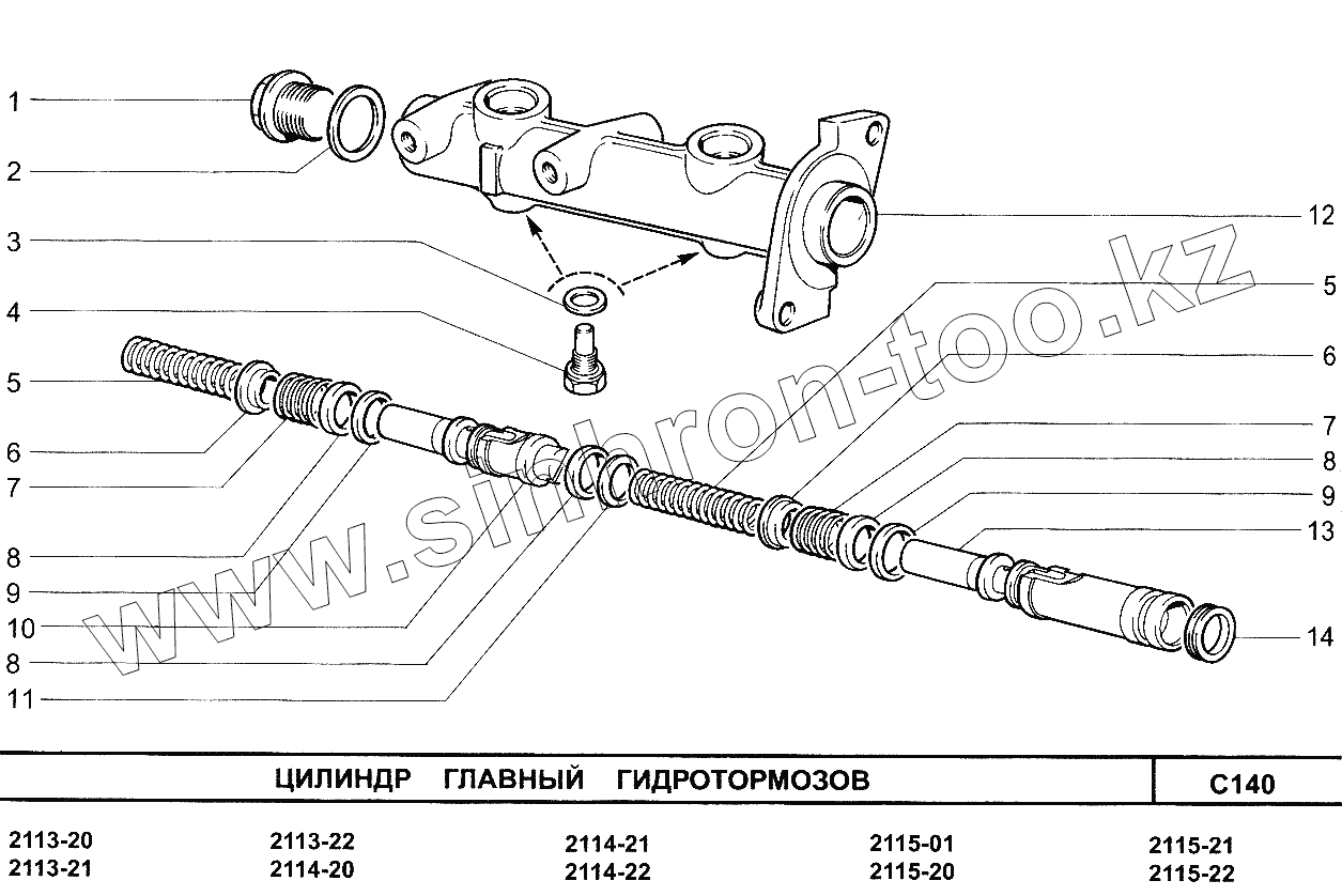 Каталог запасных частей к технике: ВАЗ-2114. Цилиндр главный гидротормозов