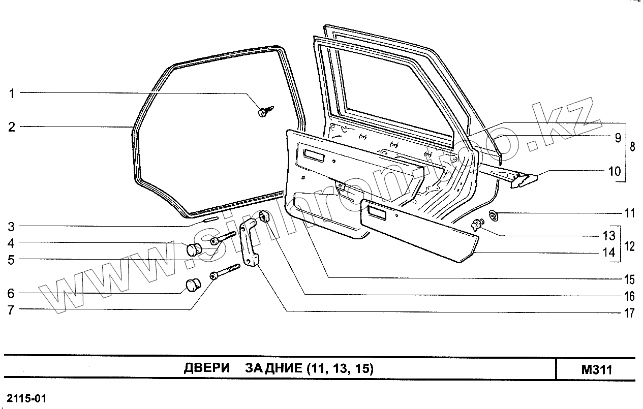 Каталог запасных частей к технике: ВАЗ-2115. Двери задние (11, 13, 15)