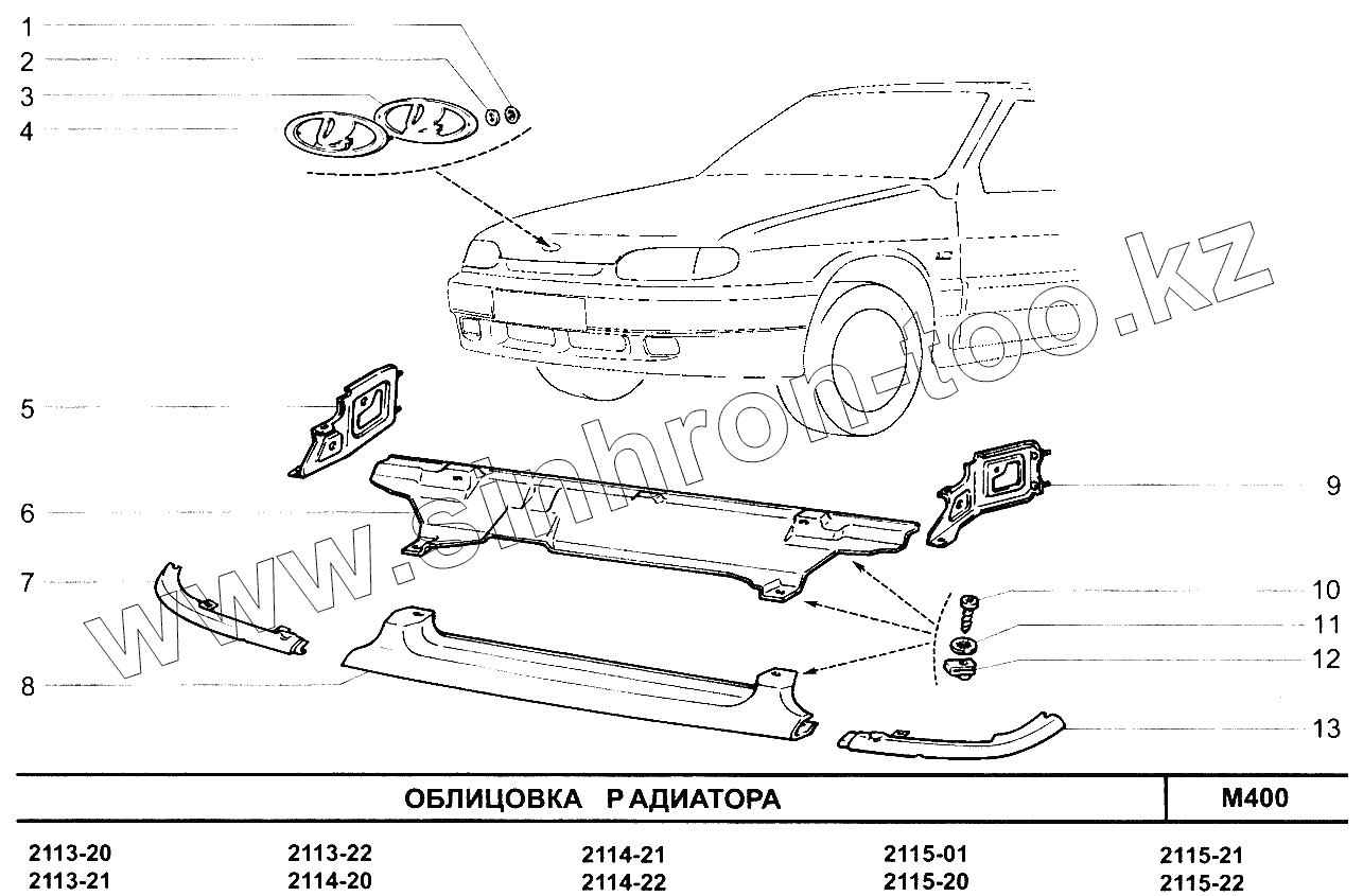 Каталог запасных частей к технике: ВАЗ-2115. Облицовка радиатора