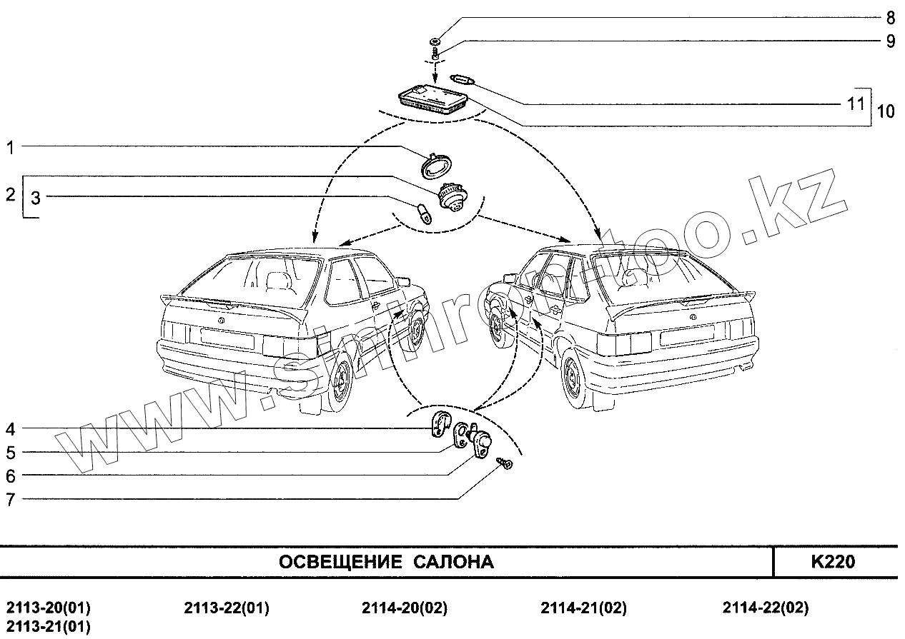 Каталог запасных частей к технике: ВАЗ-2115. Освещение салона