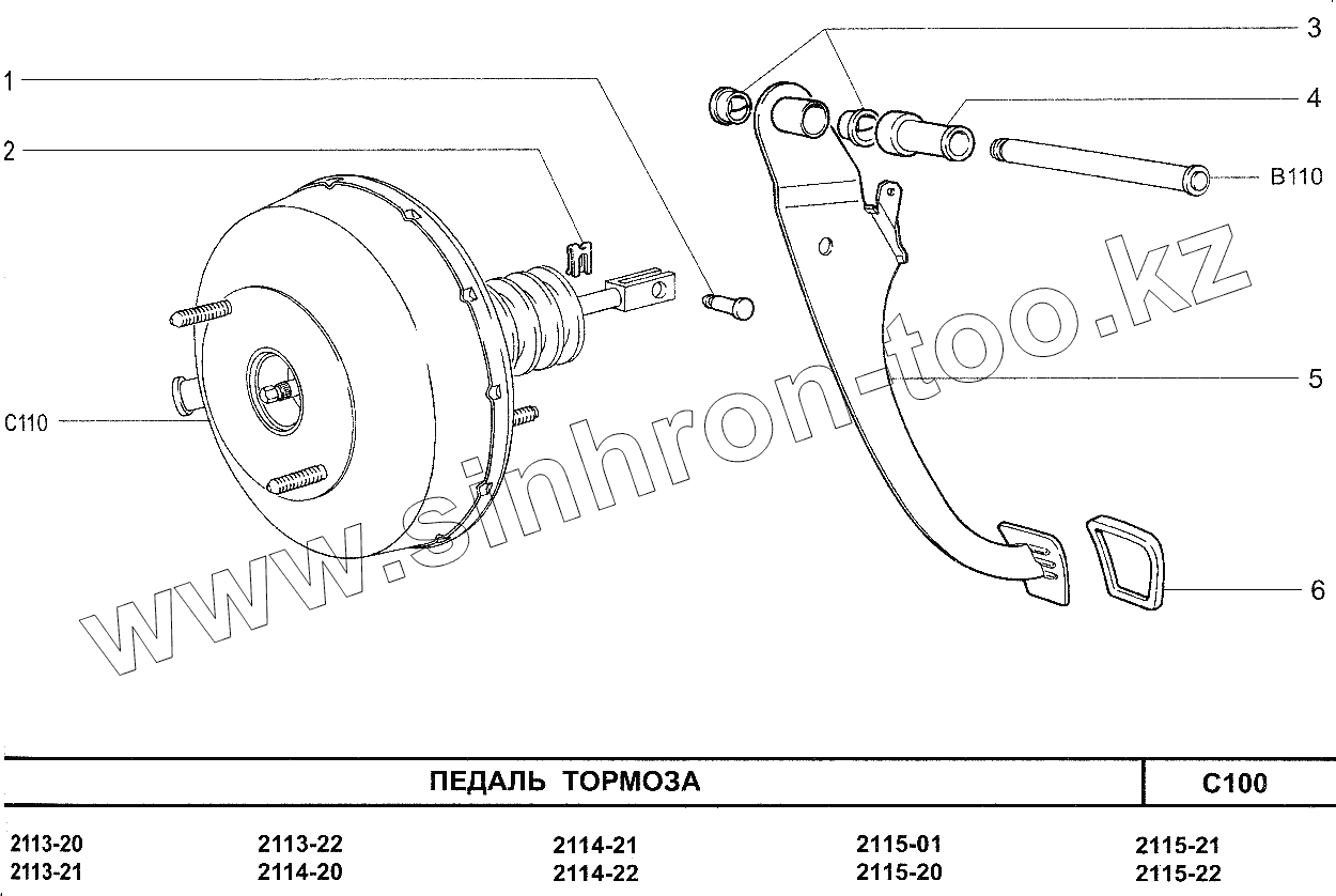 Каталог запасных частей к технике: ВАЗ-2115. Педаль тормоза