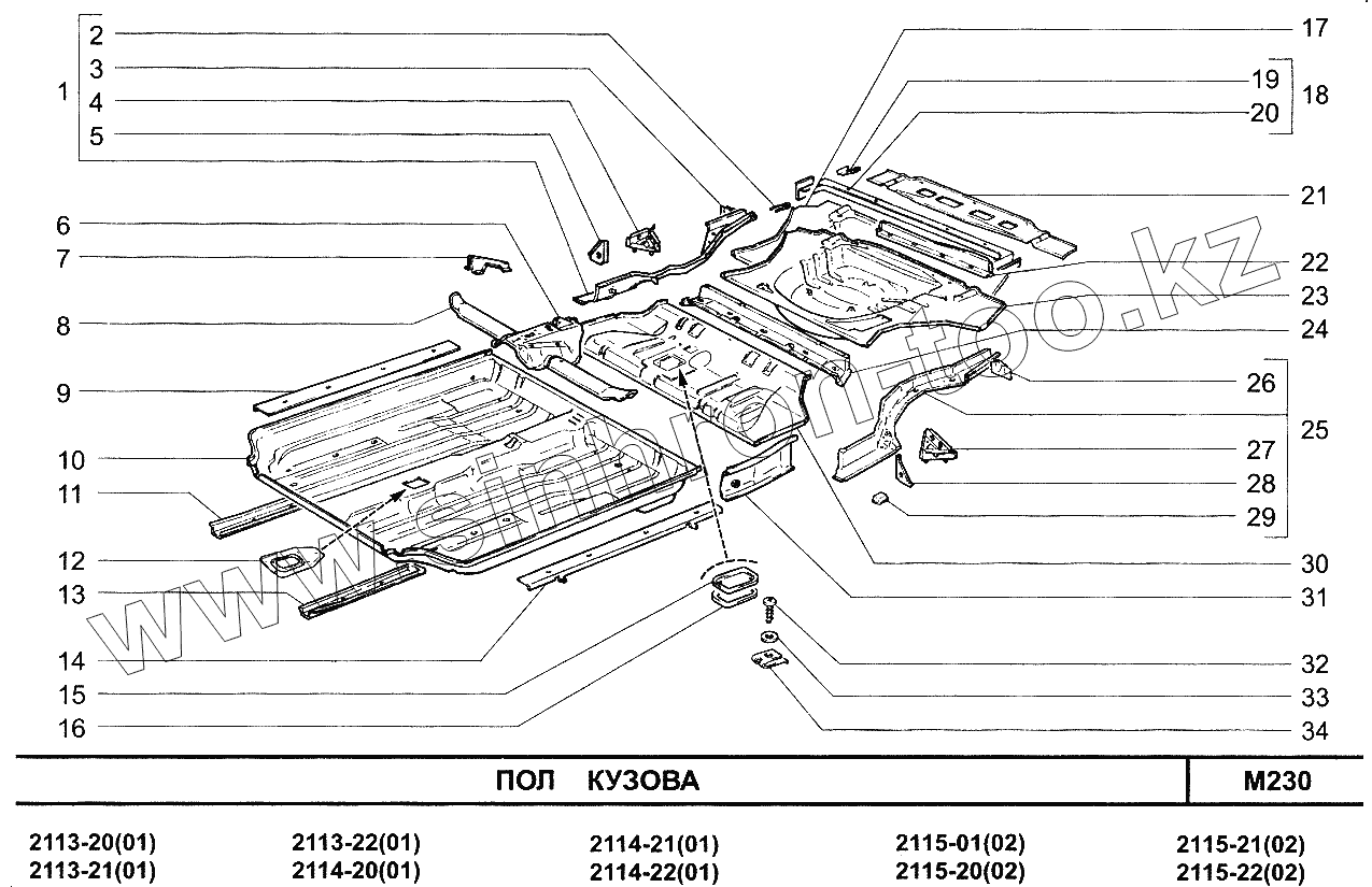Каталог запасных частей к технике: ВАЗ-2115. Пол кузова
