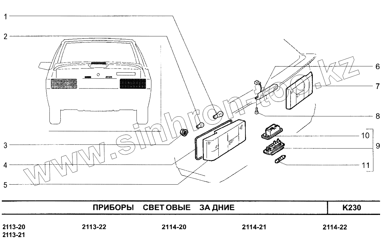 Каталог запасных частей к технике: ВАЗ-2115. Приборы световые задние