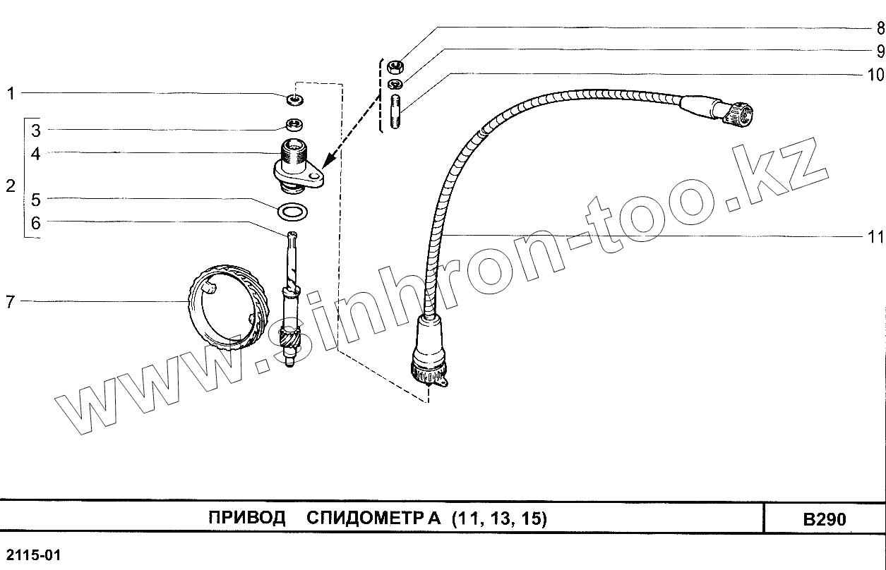 Каталог запасных частей к технике: ВАЗ-2115. Привод спидометра (11, 13, 15)