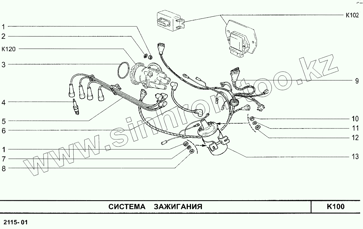 Каталог запасных частей к технике: ВАЗ-2115. Система зажигания