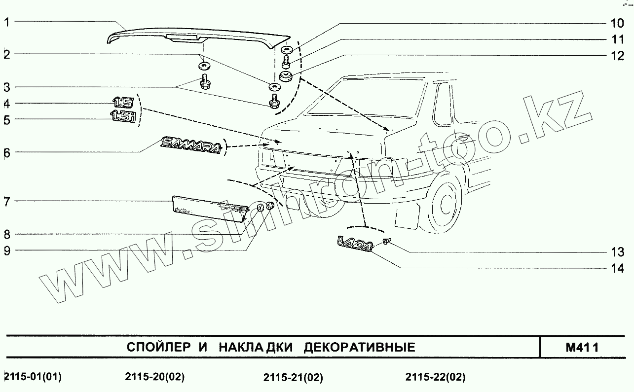 Каталог запасных частей к технике: ВАЗ-2115. Спойлер и накладки декоративные