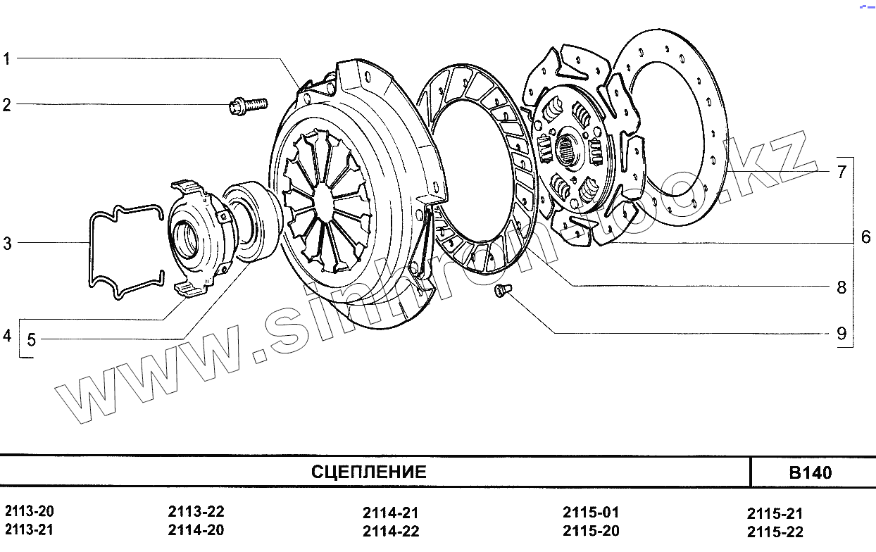 Каталог запасных частей к технике: ВАЗ-2115. Сцепление