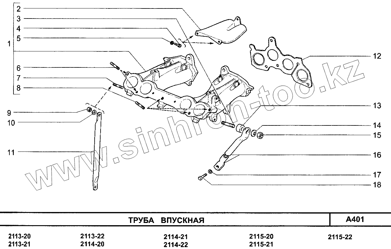Каталог запасных частей к технике: ВАЗ-2115. Труба впускная