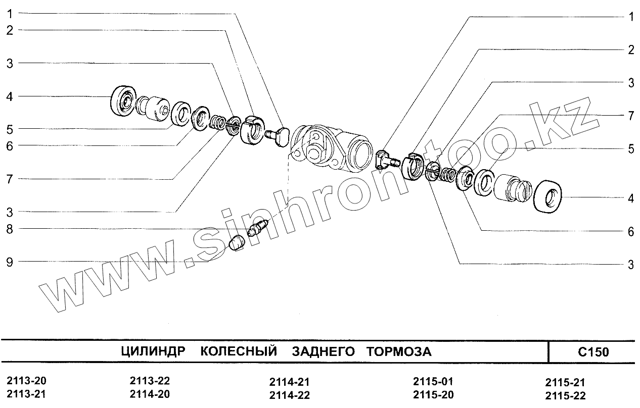 Каталог запасных частей к технике: ВАЗ-2115. Цилиндр колесный заднего тормоза
