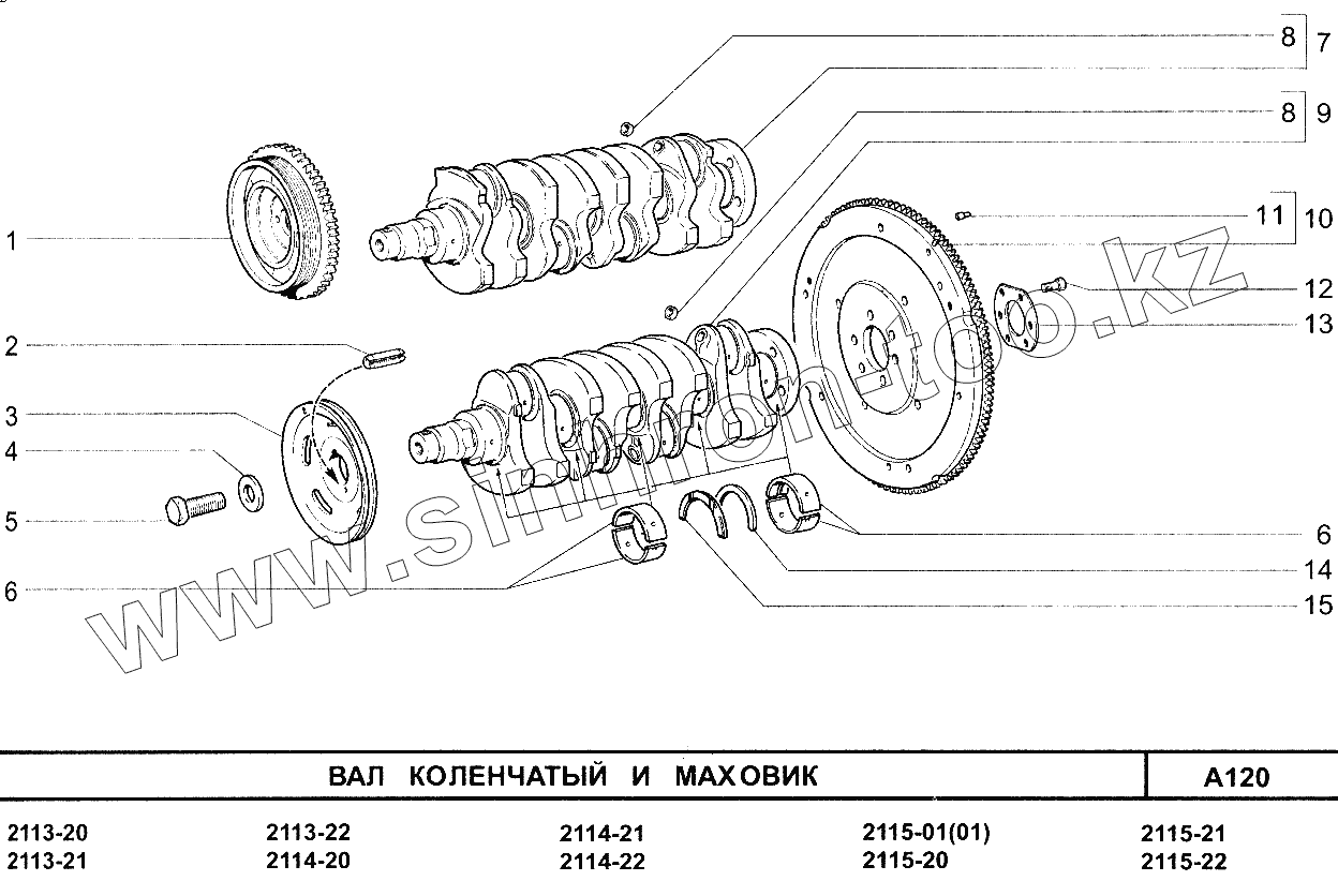 Каталог запасных частей к технике: ВАЗ-2115. Вал коленчатый и маховик
