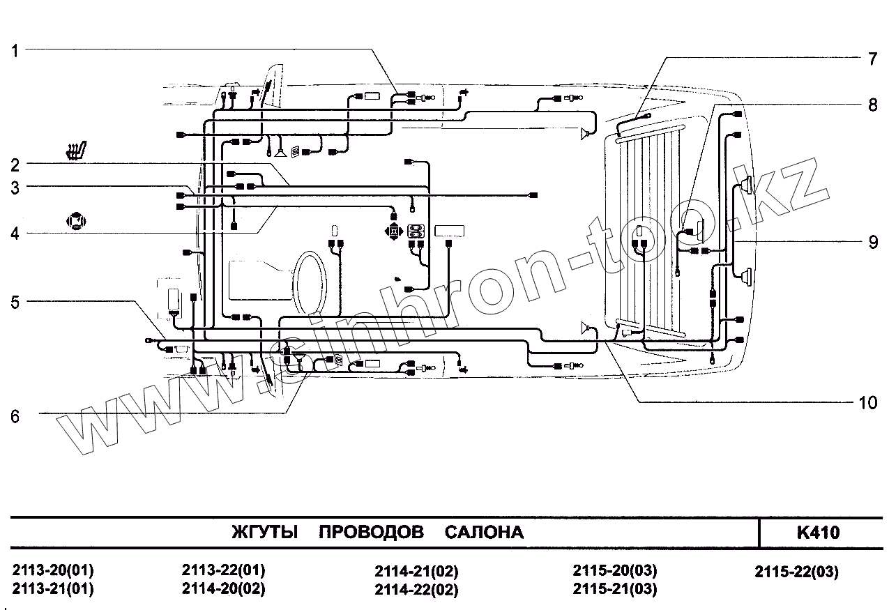 Каталог запасных частей к технике: ВАЗ-2115. Жгуты проводов салона