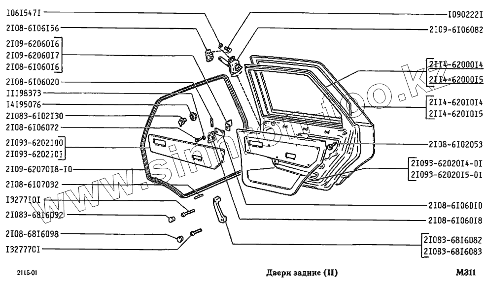 Каталог запасных частей к технике: ВАЗ-2115. Двери задние
