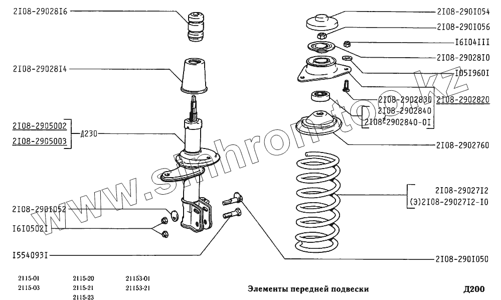 Каталог запасных частей к технике: ВАЗ-2115. Элементы передней подвески