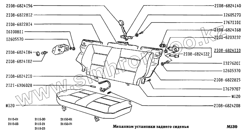 Каталог запасных частей к технике: ВАЗ-2115. Механизм установки заднего сиденья