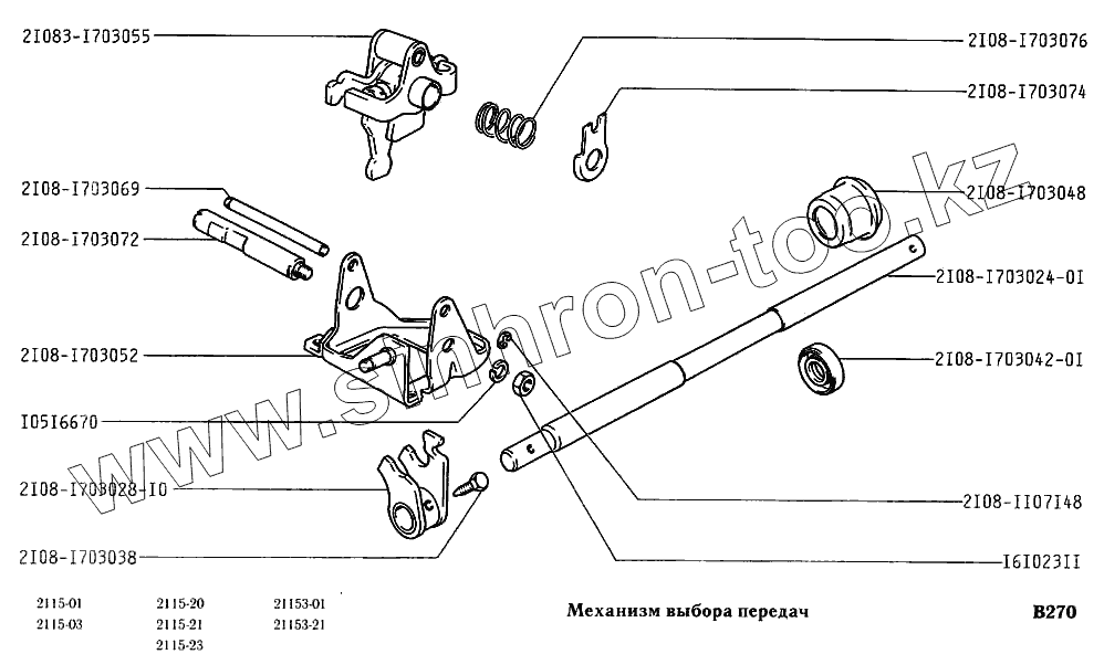 Каталог запасных частей к технике: ВАЗ-2115. Механизм выбора передач