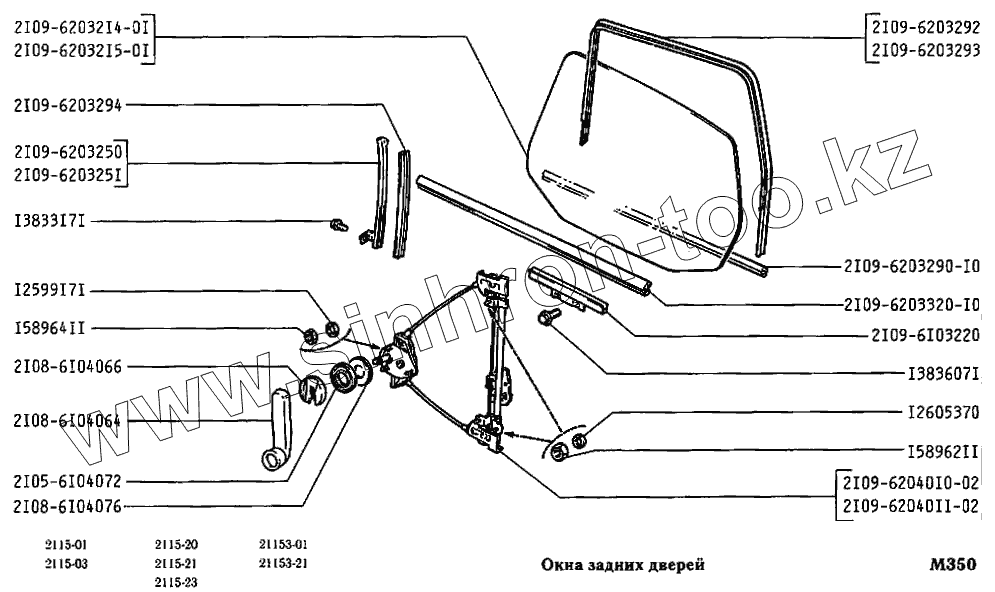 Каталог запасных частей к технике: ВАЗ-2115. Окна задних дверей