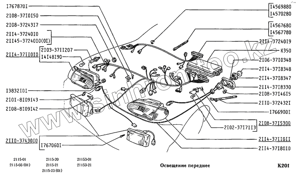 Каталог запасных частей к технике: ВАЗ-2115. Освещение переднее