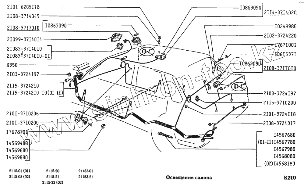 Каталог запасных частей к технике: ВАЗ-2115. Освещение салона