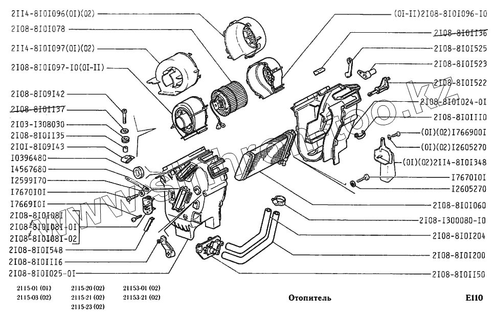 Каталог запасных частей к технике: ВАЗ-2115. Отопитель