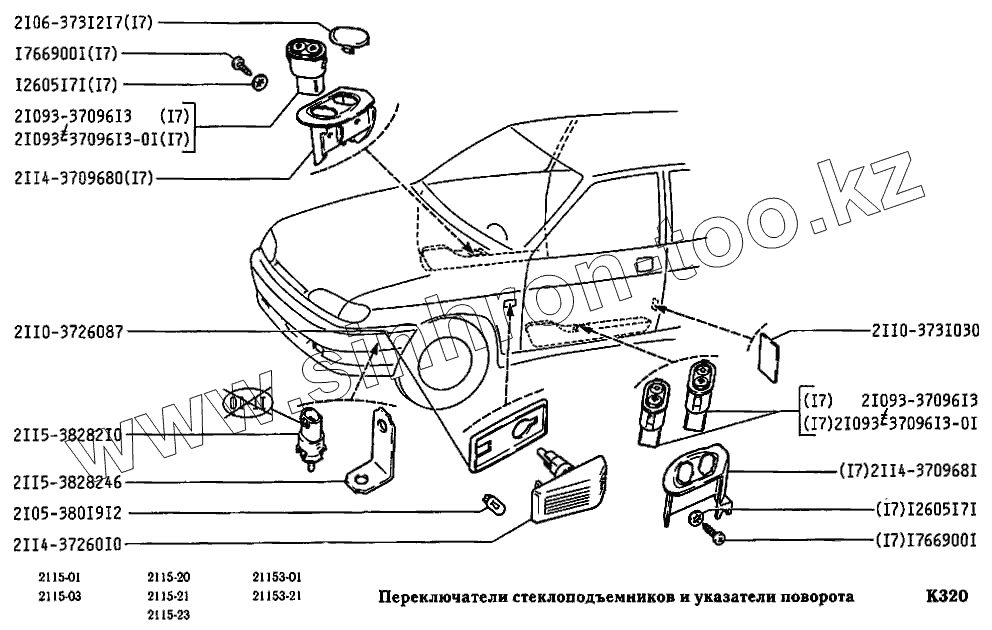 Каталог запасных частей к технике: ВАЗ-2115. Переключатели стеклоподъемников и указатели поворота