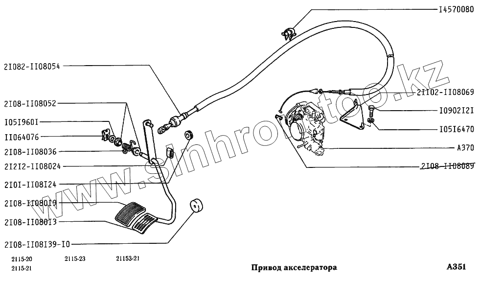 Каталог запасных частей к технике: ВАЗ-2115. Привод акселератора