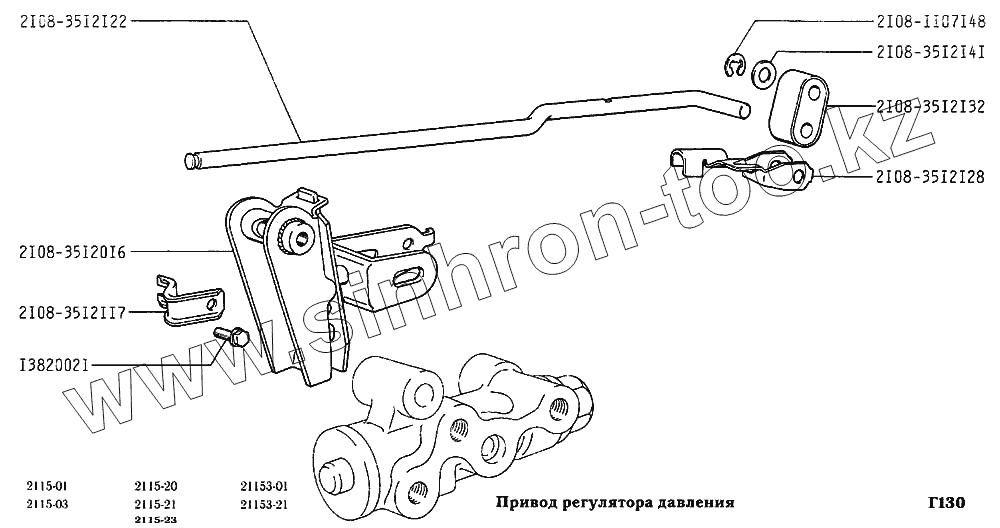 Каталог запасных частей к технике: ВАЗ-2115. Привод регулятора давления