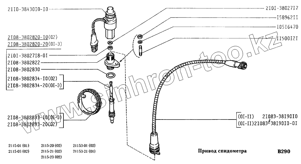 Каталог запасных частей к технике: ВАЗ-2115. Привод спидометра