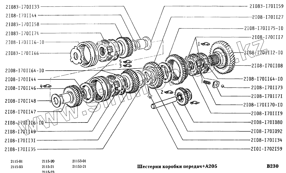 Каталог запасных частей к технике: ВАЗ-2115. Шестерни коробки передач+А205