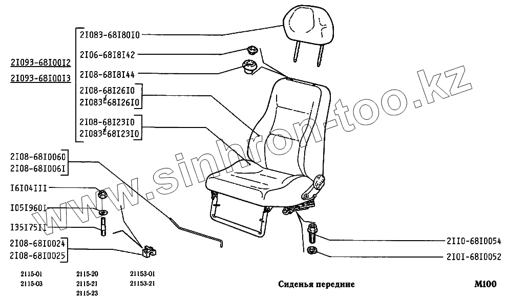 Каталог запасных частей к технике: ВАЗ-2115. Сиденья передние