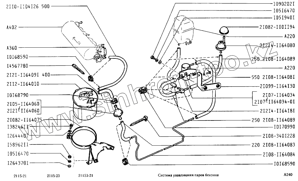 Каталог запасных частей к технике: ВАЗ-2115. Система улавливания паров бензина