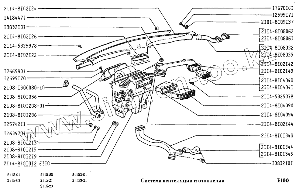 Каталог запасных частей к технике: ВАЗ-2115. Система вентиляции и отопления