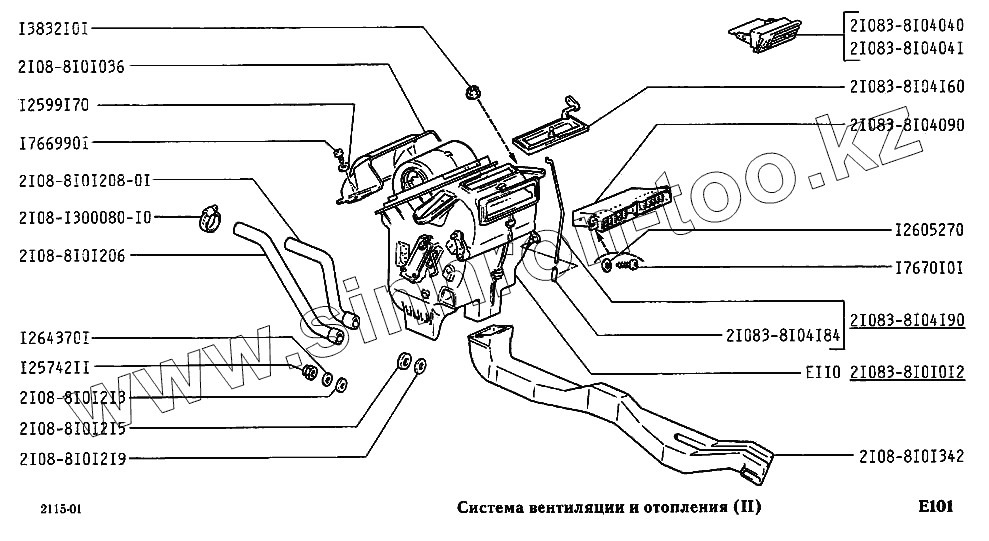 Каталог запасных частей к технике: ВАЗ-2115. Система вентиляции и отопления