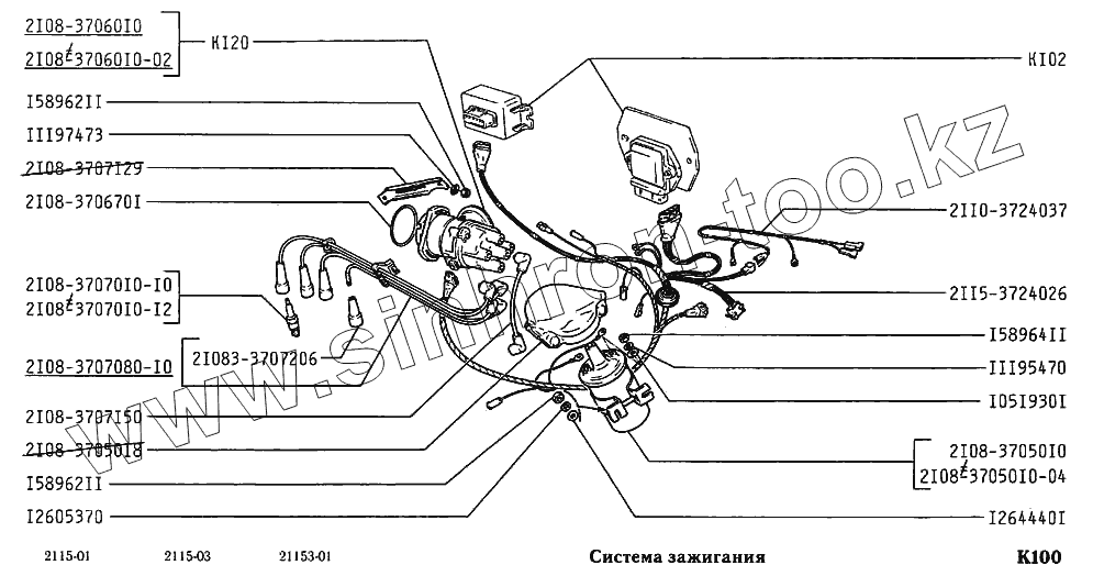 Каталог запасных частей к технике: ВАЗ-2115. Система зажигания