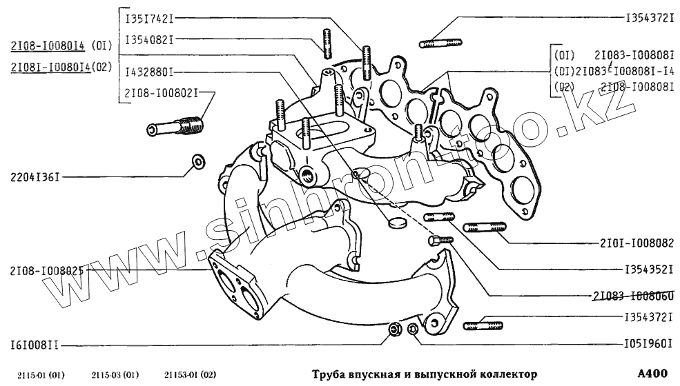 Каталог запасных частей к технике: ВАЗ-2115. Труба впускная и выпускной коллектор