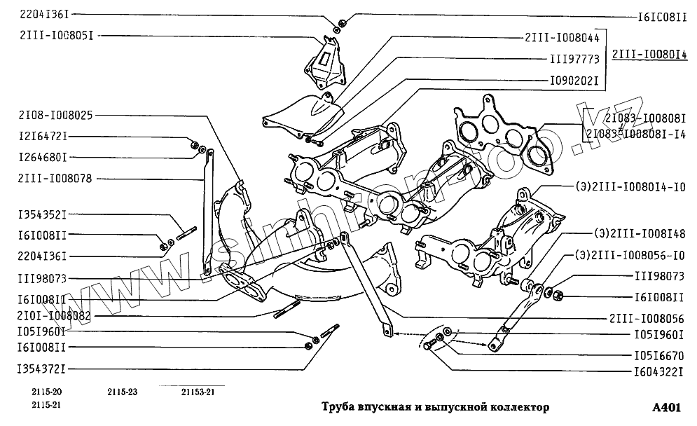 Каталог запасных частей к технике: ВАЗ-2115. Труба впускная и выпускной коллектор