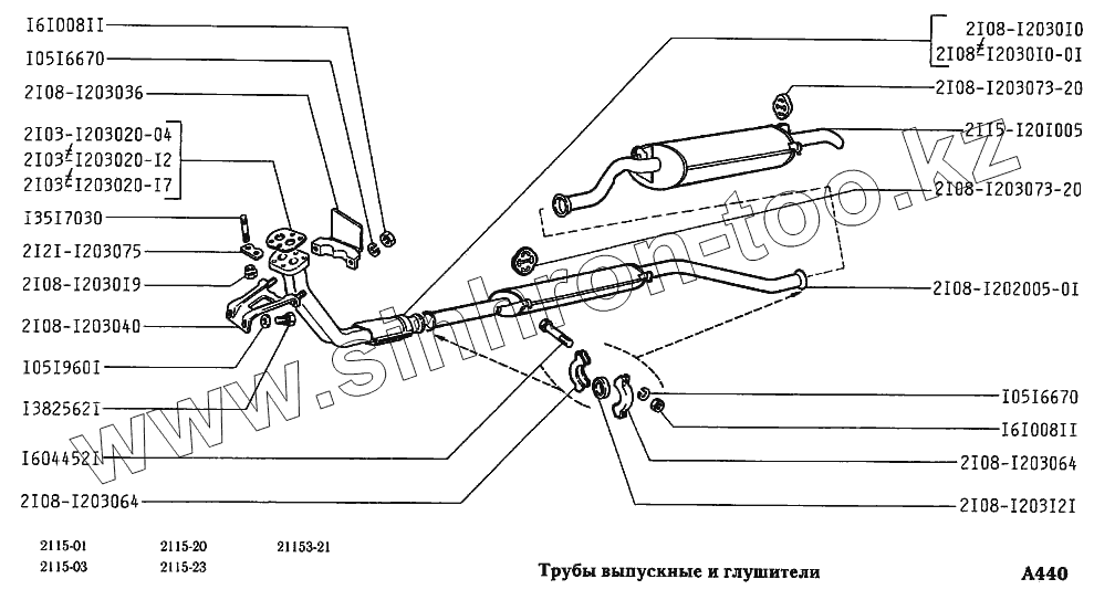 Каталог запасных частей к технике: ВАЗ-2115. Трубы выпускные и глушители
