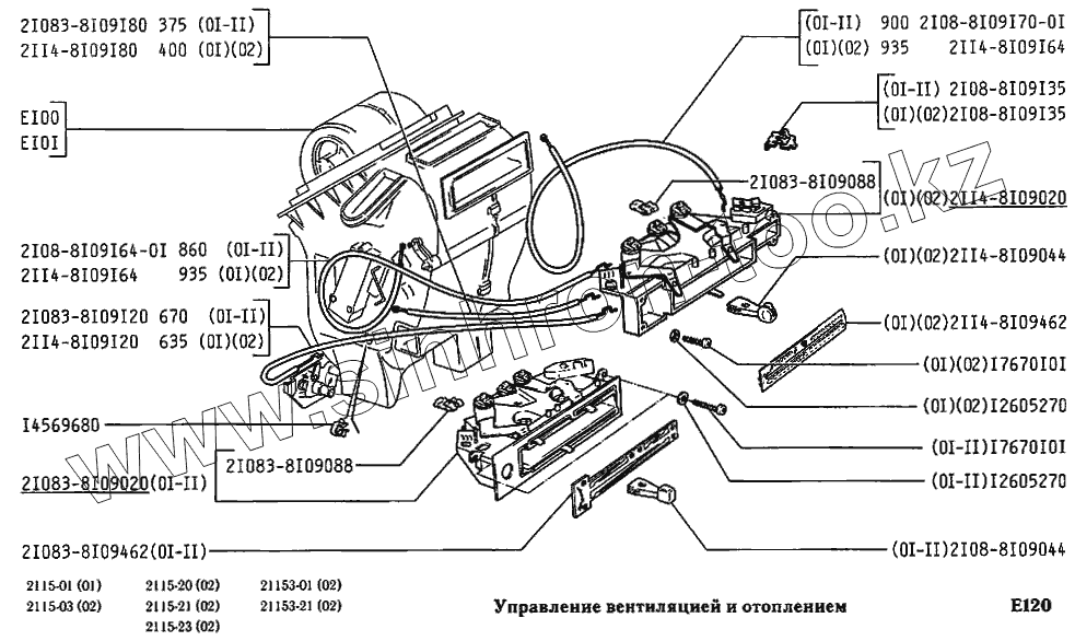 Каталог запасных частей к технике: ВАЗ-2115. Управление вентиляцией и отоплением