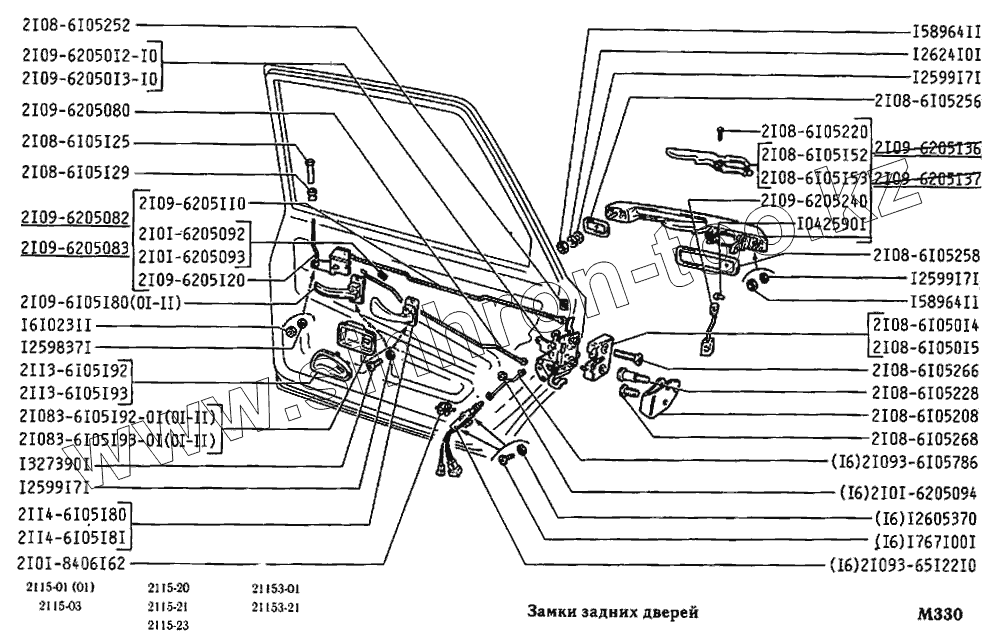 Каталог запасных частей к технике: ВАЗ-2115. Замки задних дверей