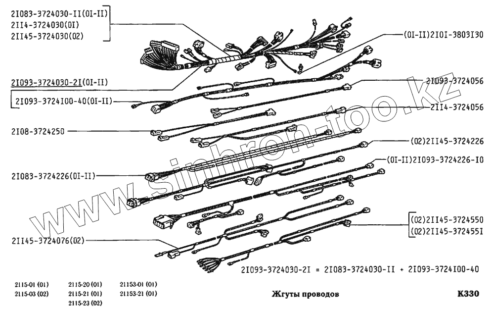 Каталог запасных частей к технике: ВАЗ-2115. Жгуты проводов