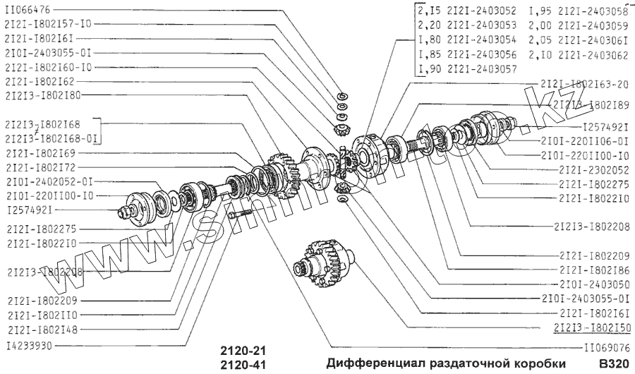 Каталог запасных частей к технике: ВАЗ-2120 (Надежда). Дифференциал раздаточной коробки