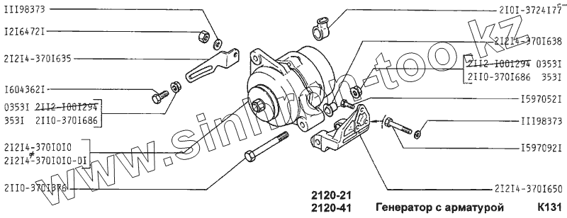 Каталог запасных частей к технике: ВАЗ-2120 (Надежда). Генератор с арматурой