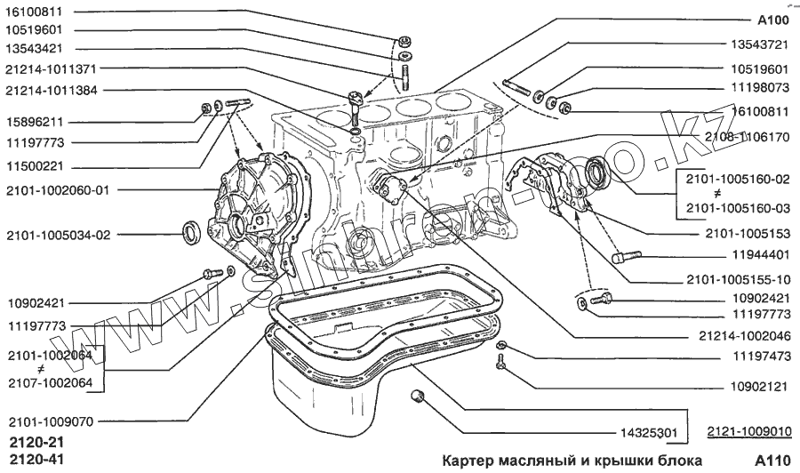Каталог запасных частей к технике: ВАЗ-2120 (Надежда). Картер масляный и крышки блока