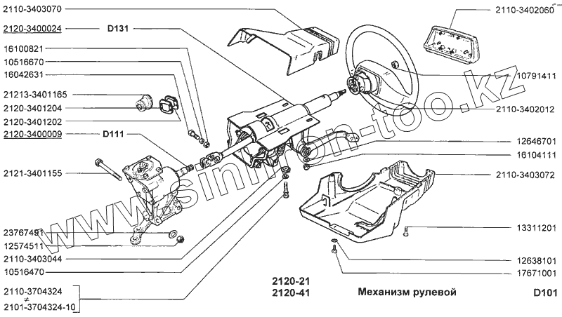 Каталог запасных частей к технике: ВАЗ-2120 (Надежда). Механизм рулевой