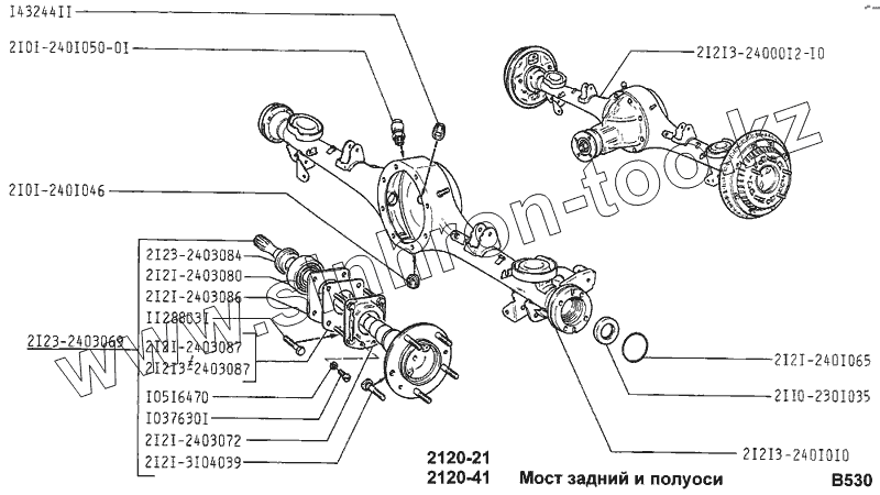 Каталог запасных частей к технике: ВАЗ-2120 (Надежда). Мост задний и полуоси