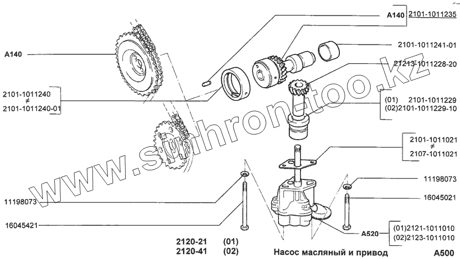 Каталог запасных частей к технике: ВАЗ-2120 (Надежда). Насос масляный и привод