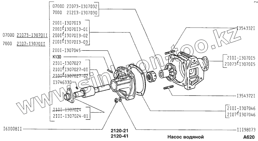 Каталог запасных частей к технике: ВАЗ-2120 (Надежда). Насос водяной