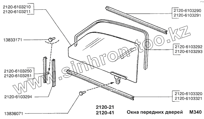 Каталог запасных частей к технике: ВАЗ-2120 (Надежда). Окна передних дверей
